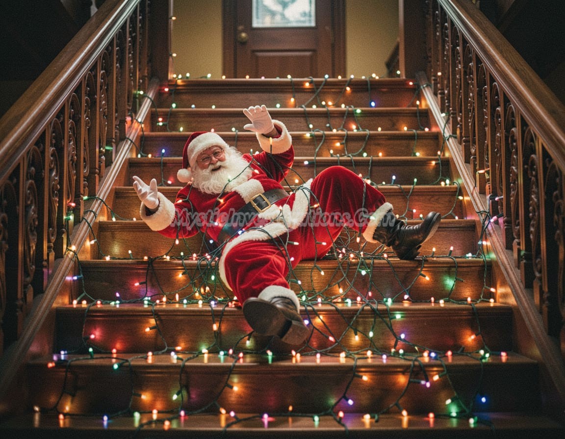 Poor Old Saint Nick also fell down at least three flights of steps! There was also varying degrees of clumsiness with the rest of the Claus Family along with other North Pole residents. Probably the most prolific were the flying reindeer crashing through the roofs of homes and shops! Then we have the case of Frosty The Snowman tripping and falling down a hill collecting snow along the way. He became a giant snowball causing a mild avalanche before flying into a bonfire. The snowman melted into steam and appeared as a steam ghost before condensing into water and raining into the snow. Three hours later he reformed back to his old self!