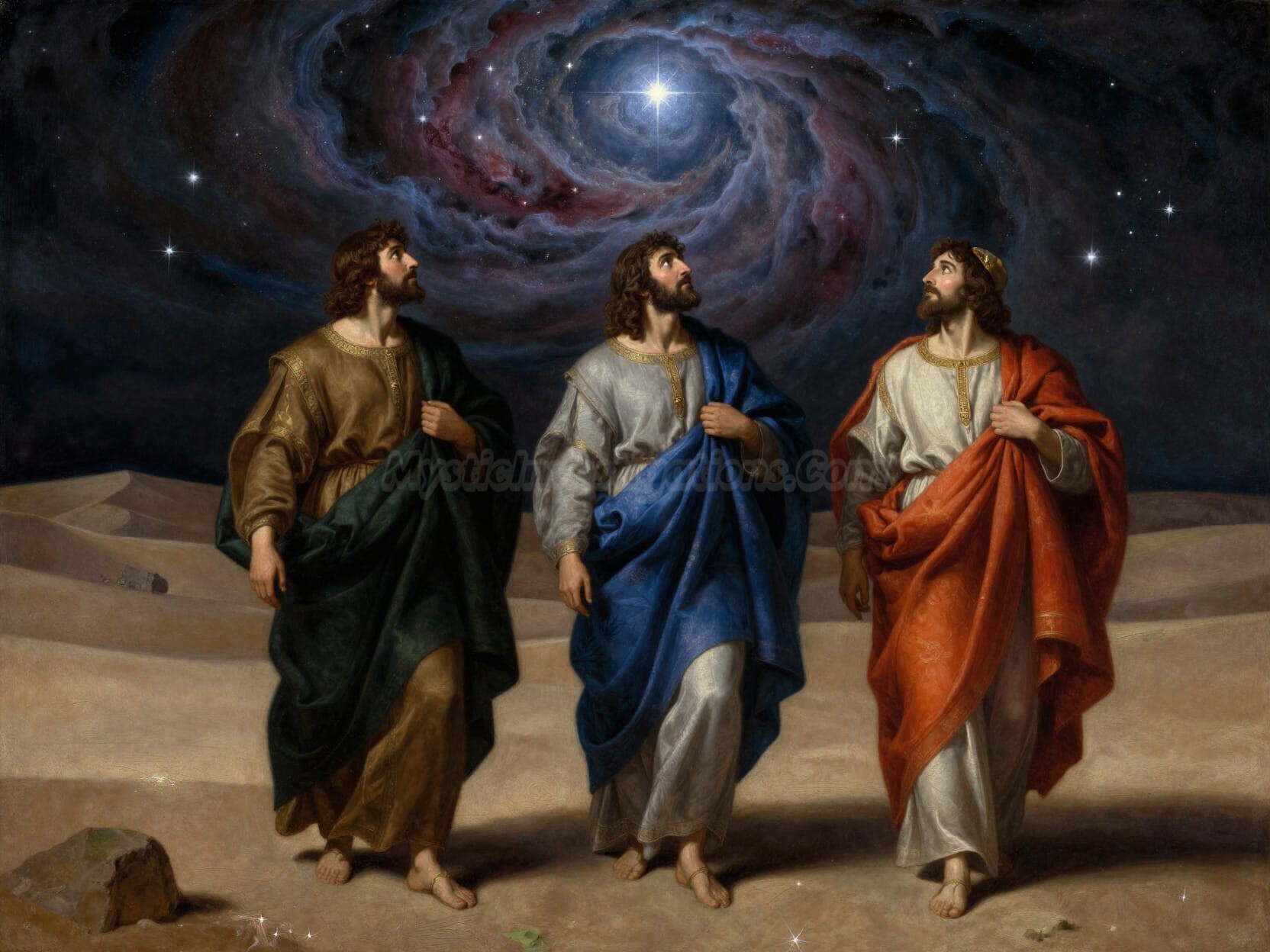 On one cold night, guided by a star that burned brighter than any omen before it, three foreign men arrived at her door. They were learned, weary, and unmistakably important, though they spoke humbly. These were the Wisemen Magi, scholars and kings in their own right, following celestial signs toward the birth of something the world had never seen. Befana welcomed them without question, fed them, and gave them the cleanest beds in her inn. She listened politely as they spoke of prophecy and destiny, but inside she dismissed it as the hopeful speculation of men who had traveled too far and believed too much.