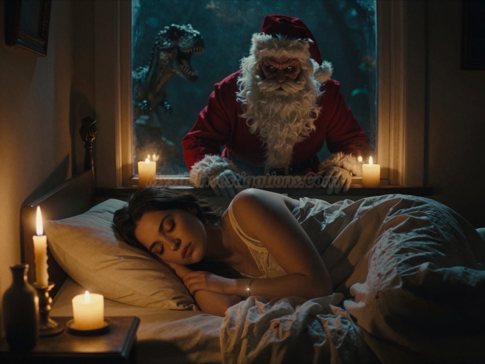 Holy Candles channeling The Spirit Of Christmas protect an innocent woman from The Anti-Claus!