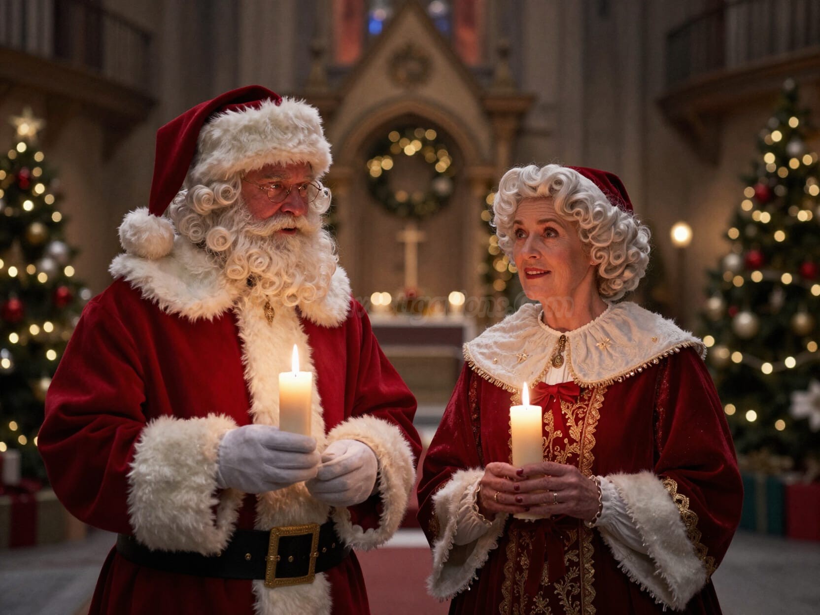 Santa and Mrs. Holly Claus celebrate Candlemas in church.