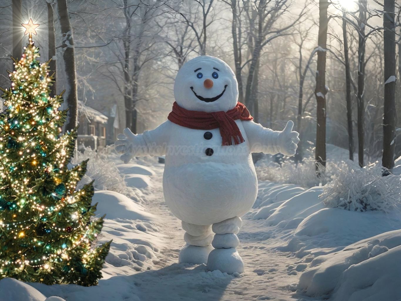 Some of us at Mystic Investigations travel to North Pole City for a few weeks during Christmas for our annual vacation. We had the pleasure of first meeting Frosty when we attended a Christmas Dinner in 2011. You’d think it would be creepy to speak with an animated snowman but his sparkling personality and almost cartoonish appearance neutralize that. He’s oddly warm and smooth to the touch as his white snow body sparkles in sheer iridescence. When you shake hands with him you don’t get snow on your hands.