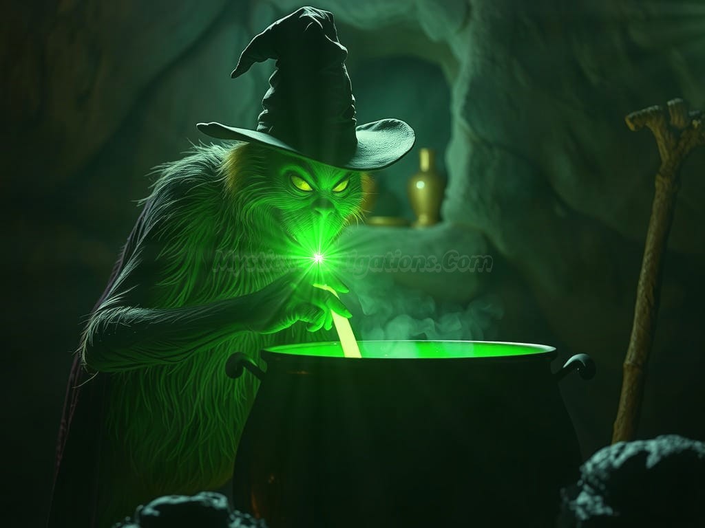 Yes, would you believe the Grinch is a real supernatural being!?! However, his story was greatly simplified by the infamous author Dr. Seuss in his 1957 book “How The Grinch Stole Christmas!” In reality, the green Grinch was a Gnome helper of the Anti-Claus. This Dark Claus is Santa Claus’s evil twin brother and the leader of Dark Christmas. Only exceptionally despicable Gnomes imbued with evil enchantment are green. This especially includes those acting as elves for the Anti-Claus. Indeed, they literally turn green with greed, and envy. They also grow larger than standard gnomes and exhibit more monstrous facial features signifying their status as members of this elite legion of elevated evil!