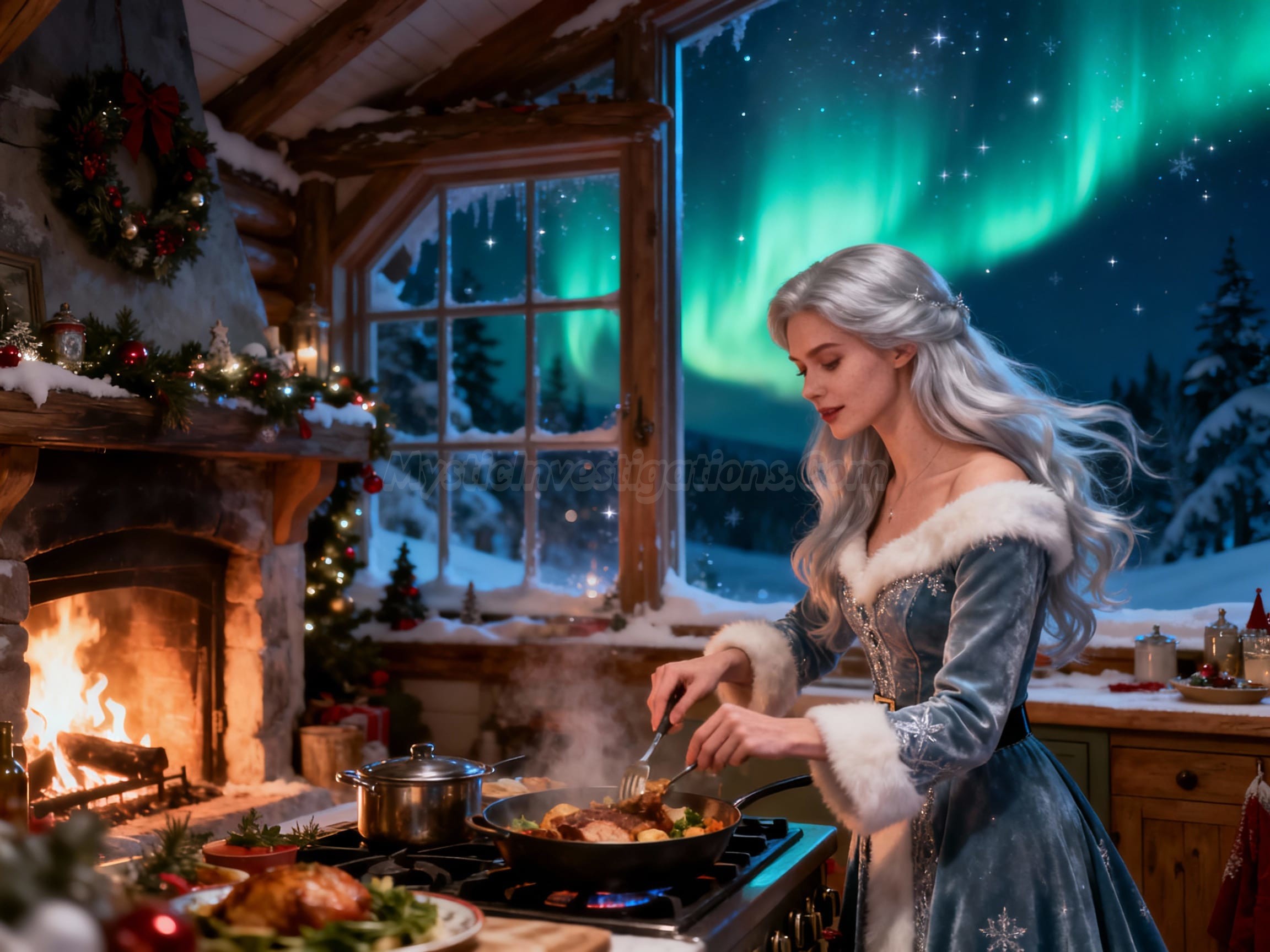 Meanwhile, in the skies overhead the Demi-Angel jolly Old Saint Nick was directing his Enchanted Reindeer, led by Rudolph The Red Nosed Reindeer, onward as he would continue to make Christmas deliveries until 4 AM. With him were three helper Elves chosen each year by lottery to join him on his magical journey through the starry Christmas skies of Earth. Suddenly the psychically keen Claus sensed trouble below. He then spotted his brother Claude launch upward in his black sleigh pulled by 8 levitating Hell Hounds led by an obedient sapient Werewolf named Wickaninnish! Santa heard the baby scream and focused his Angelic vision to spot Holly in the Anti-Claus’s arms. He then had a retrocognitive vision of the child’s abduction. Santa flew into hot pursuit and chased the Dark Claus west into future California in the blink of an eye.