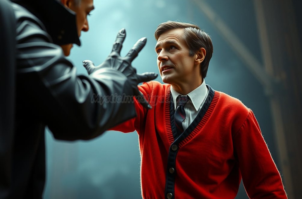 Fred was naive when he first acquired his PBS kid’s show Mister Rogers Neighborhood. Upon becoming famous he saw the world in a far different light. He realized the forces of supernatural evil were very real, and actually physical rather than just spiritually metaphysical. He first encountered the diabolical darkness directly when a vampire working for powerful plutocratic elites approached him on the PBS set. The blood sucker tried to recruit him for the indoctrination of kids into what he called a New World Order. Fred flatly refused, and the vampire attacked him later that night as he left work!